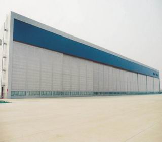 1. 門體采用特殊工藝及結(jié)構(gòu)制成,專用地軌及底部支撐輪設(shè)計(jì),頂部配置導(dǎo)向裝置 2· 內(nèi)部采用專用結(jié)構(gòu)及芯材 3· 表面靜電粉末噴涂/烤漆,顏色可選 4· 專用的控制電機(jī),控制箱及傳動(dòng)機(jī)構(gòu) 5· 可根據(jù)現(xiàn)場(chǎng)情況設(shè)計(jì)專有的方案 6· 用途:適用于機(jī)場(chǎng)機(jī)庫(kù)及維修車間,大型倉(cāng)庫(kù)等場(chǎng)所 |